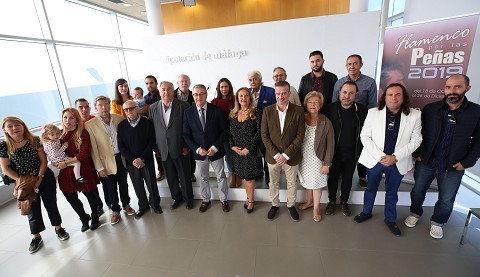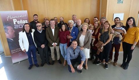El diputado de Cultura, Víctor González, ha presentado esta mañana la programación del circuito ‘Flamenco por las peñas’, que está estructurado en tres ciclos: el tradicional ‘De peña en peña’, ‘El baile por bandera’ y ‘Málaga cantaora’. En la presentación han estado presentes el presidente de la Federación Provincial de Peñas Flamencas de Málaga, Diego Pérez, y algunos de los artistas participantes.