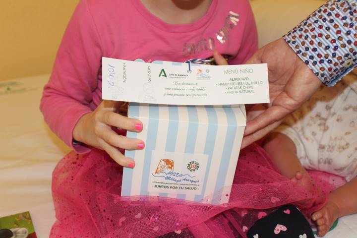 Además de este menú especial, todos los pacientes ingresados recibirán un pequeño obsequio por la conmemoración del Aniversario del Hospital de la Axarquía, consistente en un lote de productos de la Axarquía, que incluye aceite, pasas y una torta de Algarrobo, mientas que los menores recibirán un lote de material para dibujar.