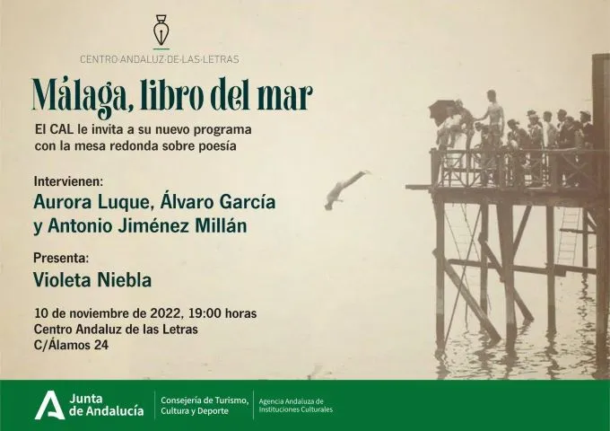 La Consejería de Turismo, Cultura y Deporte, a través de la Agencia Andaluza de Instituciones Culturales, organiza mañana jueves la segunda mesa redonda del ciclo literario ‘Málaga, libro del mar’, que busca recrear el alma literaria de la ciudad a través de autores y especialistas que han incluido a Málaga en sus libros.