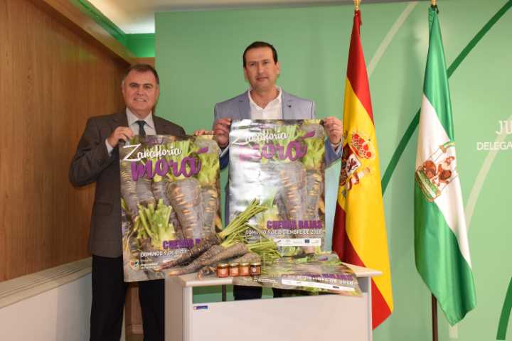 El delegado del Gobierno andaluz, Francisco Fernández España y el alcalde de Cuevas Bajas, Manuel Lara, han presentado hoy la Fiesta de la Zanahoria Morá, un evento gastronómico que el próximo domingo celebra su XIV edición en este municipio. El encuentro, declarado de Singularidad Turística Provincial, promociona y rinde homenaje a un producto autóctono característico del municipio.