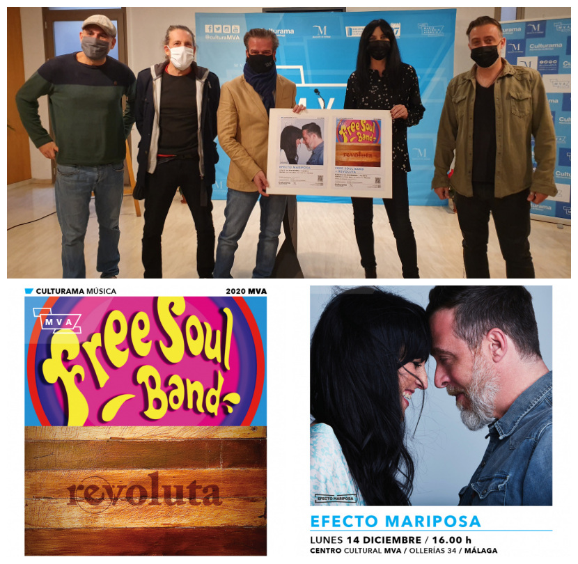 Hoy lunes, 14 de diciembre, el escenario del Centro Cultural MVA de la Diputación de Málaga recibe a Efecto Mariposa, y mañana martes tomarán el relevo Free Soul Band acompañados por Revoluta. Los espectáculos, que ya han colgado el cartel de no hay entradas, se podrán seguir en directo a través del canal de Youtube del MVA.