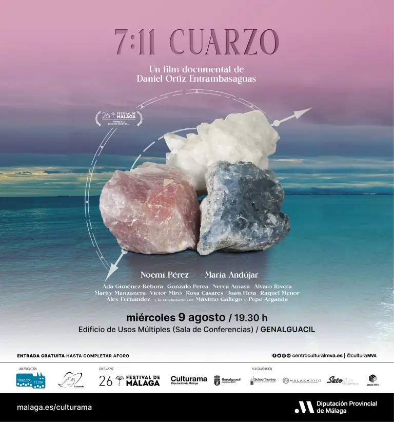 El cortometraje ‘Cuarzo 7:11’ de Daniel Entrambasaguas, que visitará varios municipios malagueños hasta septiembre, profundiza en las consecuencias del abuso infantil y las distintas formas de vivir el duelo. En el mes de agosto recorrerá Genalguacil, Benaoján, Archidona y Frigiliana. Tras la proyección se podrá disfrutar de una charla-coloquio con el director.