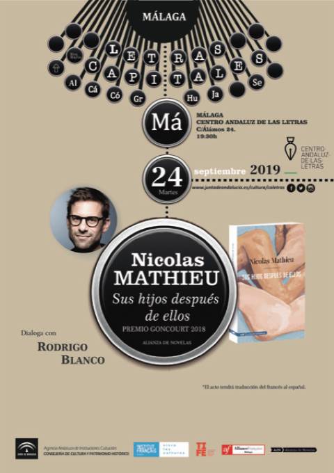 La Consejería de Cultura y Patrimonio Histórico, a través del Centro Andaluz de las Letras, junto con el Institut Français de Sevilla, la Alianza Francesa de Málaga y la editorial Alianza de Novelas, organizan mañana día 24 en Málaga la presentación de la nueva novela de escritor Nicolas Mathieu ‘Sus hijos después de ellos’, galardonado con el Premio Goncourt 2018. El encuentro literario, que tendrá lugar en la sede del CAL a las 19:30, contará con la presencia del escritor Rodrigo Blanco, que conducirá el acto. La actividad contará con traducción del francés al español.