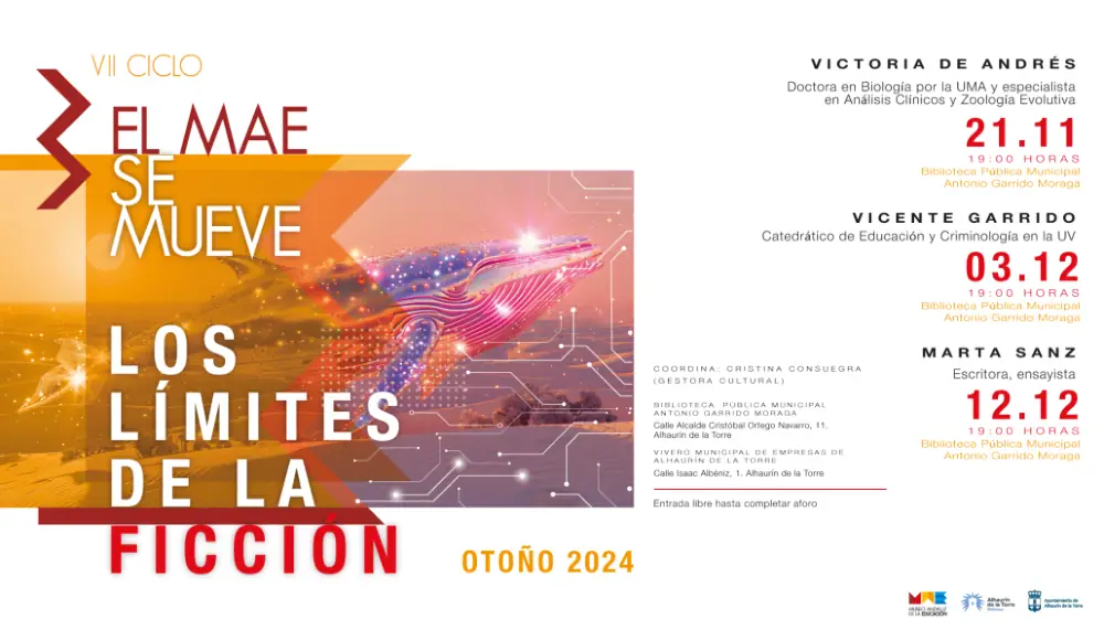 El VII ciclo ‘El MAE se mueve’, organizado por el Museo Andaluz de la Educación (MAE) del Ayuntamiento de Alhaurín de la Torre, regresa este otoño con una serie de encuentros centrados en reflexionar sobre «Los Límites de la Ficción», un tema que explora cómo este concepto influye en nuestra vida cotidiana, desde la narrativa artística hasta la política, la economía y las transformaciones sociales.