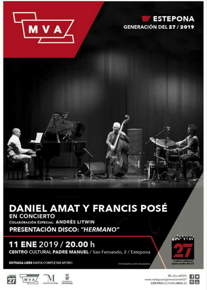 Mañana viernes, 11 de enero, el pianista cubano Daniel Amat y el contrabajista malagueño Francis Posé, ambos asiduos colaboradores del ciclo e jazz y poesía del Centro del 27 de la Diputación de Málaga, llevan su jazz latino a Estepona.