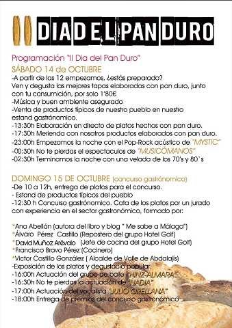 El municipio del Valle de Abdalajís celebrará el próximo fin de semana, 14 y 15 de octubre, el II Día del Pan Duro, un festejo de carácter gastronómico que cuenta con la colaboración de la marca promocional de la Diputación, Sabor a Málaga, en el que el pan duro es el protagonista estrella.