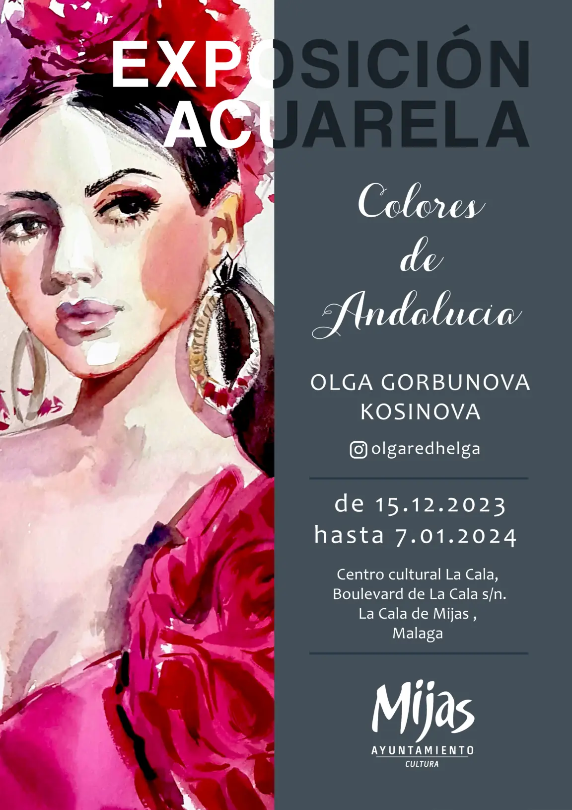 El viernes 15 de diciembre se inaugura a las 19:00 h. en el Centro Cultural de La Cala de Mijas una Exposición de Acuarela titulada «Colores de Andalucía» a cargo de Olga Gorbunova Kosinova. Se podrá visitar hasta el 7 de enero de 2024.