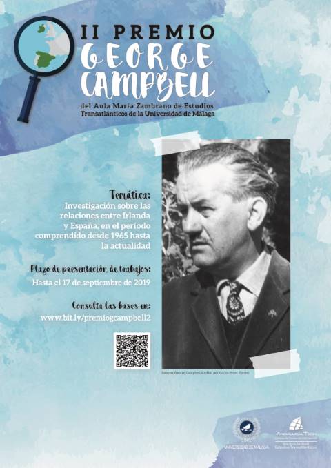 Este premio se enmarca dentro de los Premios España-Irlanda del Aula María Zambrano de Estudios Transatlánticos de la Universidad de Málaga, que buscan abrir nuevos campos de investigación en diversas áreas en torno a las relaciones entre España e Irlanda. Para ello, cuentan con tres modalidades que abarcan distintas disciplinas: el Premio George Campbell, para trabajos sobre arte, música y deporte entre España e Irlanda; el Premio Kate O’Brien, para trabajos de investigación sobre las relaciones literarias y/o de género entre España e Irlanda, cuya convocatoria se encuentra abierta hasta el 13 de junio de 2020, y el Premio Robert Boyd, dedicado en las relaciones históricas entre ambos países. Estos premios, cuya convocatoria se abrirá próximamente, cuentan con el mecenazgo de José Antonio Sierra y están dotados económicamente con 1.200€ en cada modalidad.