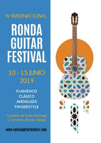 Ronda Internacional Guitar Festival va a celebrar en 2019 su cuarta edición, entre el 10 y 15 de junio 2019. Labor de trabajo y esfuerzo, pero sobre todo pasión por la cultura y la guitarra española. Un Festival en que sus tres adiciones anteriores se ha logrado posicionar como uno de los Festivales de Guitarra de referencia, con una gran proyección internacional. Artistas de 12 países y público de más de 23 países del mundo, constatan esta proyección, de la cual se nutre Ronda y consecuentemente pone en el punto de mira a Andalucía, a los amantes de la música de todo el mundo.