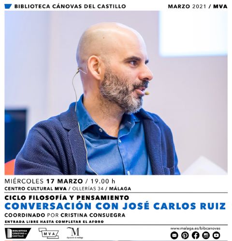 Mañana miércoles, 17 de marzo, a las 19.00 horas, el Centro Cultural MVA de la Diputación de Málaga será escenario de la sesión inaugural del Ciclo ‘Filosofía y Pensamiento’ que impulsa la Biblioteca Provincial Cánovas del Castillo. El filósofo José Carlos Ruiz y Cristina Consuegra, coordinadora del ciclo, debatirán sobre el ensayo ‘Filosofía ante el desánimo’ (Destino, 2021), título que analiza, de manera pormenorizada y próxima, las diversas variables que influyen en la identidad del individuo contemporáneo; variables vinculadas a la turboceleridad, la bulimia emocional, la obsesión por la producción o la precariedad laboral, entre otros asuntos que están definiendo el rumbo de las sociedades occidentales.