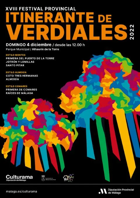 La Diputación celebra el XVIII Festival Provincial Itinerante de Verdiales, que llegará el 4 de diciembre a Alhaurín de la Torre. Actuarán siete pandas de los tres estilos en el Parque Municipal a partir de las 12:00 horas.