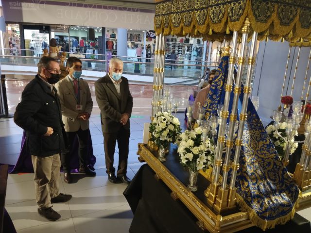 Antequera, 7 de abril de 2022.- El centro comercial La Verónica de Antequera se llena un año más de Semana Santa de la mano del artista antequerano José Matas Aguilera, quien expone hasta el 17 de abril sus tronos chicos, réplicas exactas de los que procesionan en la localidad malagueña.