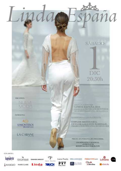 Linda España es un evento organizado por Nueva Moda Producciones y patrocinado por el hotel Los Monteros Marbella Hotel Spa&Golf Resort 5* GL y Club La Cabane , con la colaboración de Laboratorios Kapyderm, Clínicas Benzaquén, Masglo, Marie Claire, Linda Magazine, Touch Comunicación, PTV, Dávila Asociados, Prats y González Abogados, decoración de Unique by Roberto Silvosa, La Pesquera, ViajaenMinibús, peluquería Antonio Eloy y maquillaje Arteness.