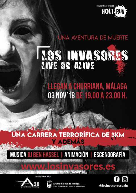 Un nuevo evento sacudirá la noche de Churriana el 3 de noviembre en la semana más terrorífica del año. Los Invasores consiste en una carrera no competitiva donde el ejército invasor intenta infectar a los participantes mediante su música y el pánico. Todos no caerán en sus redes, también está la Resistencia que saldrá indemne. El reto tendrá como epicentro la Plaza de la Inmaculada de Churriana en Málaga, en la tarde-noche del sábado posterior a Halloween.