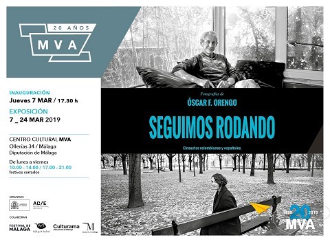 El Centro Cultural MVA (c/ Ollerías, 34) acoge desde hoy jueves 7 la exposición ‘Seguimos rodando. Cineastas colombianos y españoles’, de Óscar Fernández Orengo, producida por Acción Cultural Española (AC/E) y compuesta por una inédita, variada y representativa selección de retratos de cineastas españoles y colombianos que por primera vez se muestran en España tras su periplo por varias ciudades colombianas. La exposición se prolongará hasta el domingo 24 de marzo, coincidiendo con la clausura de la 22 edición de Festival de Málaga.