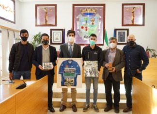 El ciclista profesional coíno Carmelo Urbano ha entregado al Ayuntamiento de Coín este martes su primer maillot de meta volante obtenido como profesional durante...