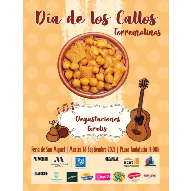 La Diputación de Málaga a través de Sabor a Málaga, impulsará el Día de los Callos en Torremolinos, una fiesta gastropopular organizada por la Asociación de Comerciantes y Empresarios de Torremolinos (ACET) en colaboración con el Ayuntamiento de Torremolinos el 26 de septiembre en la Plaza Costa del Sol del municipio. Se repartirán de forma gratuita 4.500 raciones elaboradas con productos adheridos a la marca promocional de la institución provincial de la Diputación de Málaga a partir de las 13:00 horas en la plaza Andalucía.