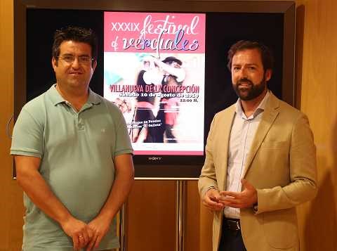 El diput ado provincial, Juande Villena, y el alcalde de Villanueva de la Concepción, Gonzalo Sánchez, han presentado hoy el cartel anunciador del Festival de Verdiales y su programación.