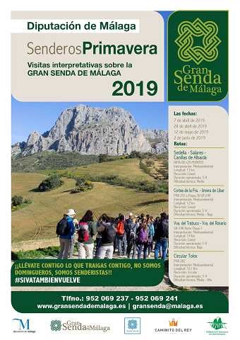 El próximo domingo, 7 de abril, da comienzo una nueva edición de los Senderos de Primavera, el programa de rutas de senderismo organizadas por Diputación en los municipios menores de 20.000 habitantes. Sedella, Salares, Canillas de Albaida, Cortes de la Frontera, Jimera de Líbar, Villanueva del Trabuco, Villanueva del Rosario y Tolox son los municipios que participan en esta edición. Los Senderos de Primavera se celebrarán los días 7 y 28 de abril, 12 de mayo y 2 de junio.