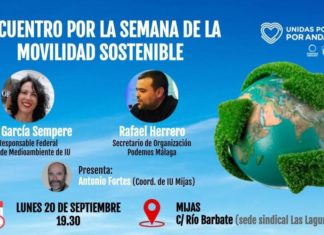 (Unidas Podemos) El acto, enmarcado en la Semana Europea por la Movilidad Sostenible, tendrá lugar el próximo lunes, 20 de septiembre, a las 19.30...