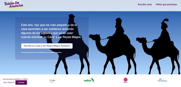De esta manera, Tablondeanuncios.com presenta esta aplicación web, que permite a los niños escribir su carta a los Reyes Magos y al mismo tiempo donar aquellos juguetes que ya no utilizan. Esta iniciativa forma parte del programa de donaciones de Tablondeanuncios.com, cuyo objetivo es dar una segunda vida a los objetos en buen estado y ayudar a quienes más lo necesitan.
