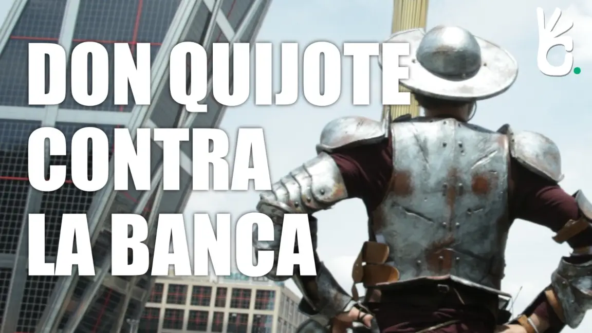 En el video, el personaje de Don Quijote se enfrenta a los gigantes, que son las conocidas “Torres KIO” o Puerta de Europa en Madrid, donde se encuentra la sede de Caixabank, la entidad que, según Recortes Cero, “más parte del rescate bancario debe al país”. En ese escenario, el Quijote de la historia trata de acceder al banco para reclamar al “señor del castillo” porque “queremos que nos devuelva el rescate bancario”.