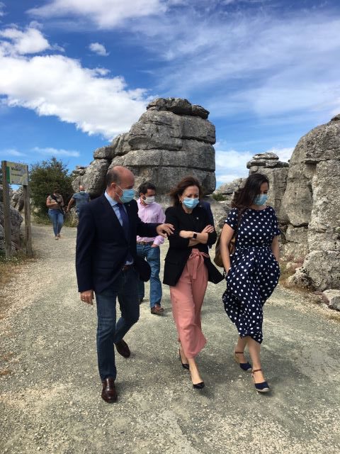 Durante una visita al Centro de Visitantes del Torcal Alto de Antequera, cuyas puertas reabrieron al público el pasado 8 de junio, la delegada del Gobierno ha explicado que se van a destinar 185.000 euros para la puesta en valor de los monumentos naturales más singulares de nuestra provincia, como es el caso de ‘el Tornillo’, esa formación geológica tan significativa en El Torcal de Antequera; y otra partida de 250.000 euros para la adaptación y mejora de los equipamientos públicos del Futuro Parque Nacional de Sierra de las Nieves, entre otras cosas.