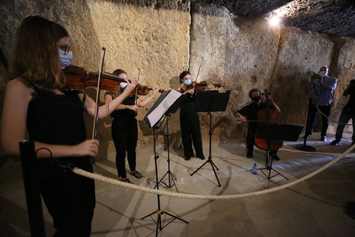 De hecho, antes de las intervenciones se ha guardado un minuto de silencio en el interior del dolmen de Menga en recuerdo a las víctimas del coronavirus, los asistentes han disfrutado de un breve recital del Cuarteto de Cámara de la Escuela Municipal de Música de Antequera.