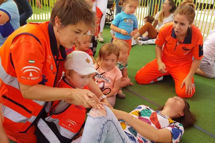 La Empresa Pública de Emergencias Sanitarias 061 ha organizado una sesión formativa para enseñar técnicas básicas de reanimación cardiopulmonar a 170 niños de entre 1 y 5 años, con un programa adaptado a estas edades. El objetivo de esta jornada es iniciar a los más jóvenes en la prevención en materia de salud y en el conocimiento de los primeros auxilios desde edades tempranas.