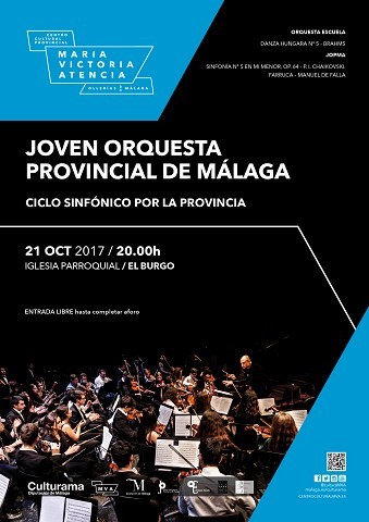 La Joven Orquesta Provincial de Málaga (JOPMA) y la Orquesta Escuela (OE) ofrecerán este fin de semana conciertos en dos municipios en el marco del Ciclo Sinfónico por la Provincia que organiza la Diputación de Málaga. El primero de ellos será mañana, sábado 21 de octubre, a las 20:00 horas, en la Iglesia Parroquial de El Burgo, mientras que el domingo, 22 de octubre, la cita será en la plaza del Reloj de Estepona a las 12:00 horas. En todos ellos la entrada es libre hasta completar el aforo.