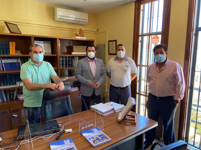 El director general de Administración Local, Joaquín López-Sidro, y la delegada territorial de la Consejería de Turismo, Regeneración, Justicia y Administración Local en Málaga, Nuria Rodríguez, han visitado hoy Comares, donde se han reunido con el alcalde, Manuel Robles, para intercambiar información sobre las ayudas de la Junta al municipio para afrontar el COVID-19 y conocer algunos de los proyectos que se están ejecutando con cargo al Plan de Empleo Agrario (PFEA), entre ellos un vivero de empresas.