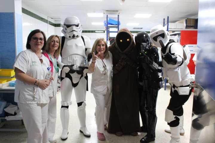 Los niños y niñas ingresados en el Hospital Comarcal de la Axarquía, perteneciente al Área Sanitaria Este de Málaga-Axarquía, recibieron la visita de unos cuantos personajes de la saga cinematográfica La Guerra de las Galaxias (Star Wars). Esta iniciativa forma parte del Plan Integral al Niño Hospitalizado, que tiene como fin hacer que la estancia de los pacientes infantiles y de sus familiares resulte lo más grata posible.