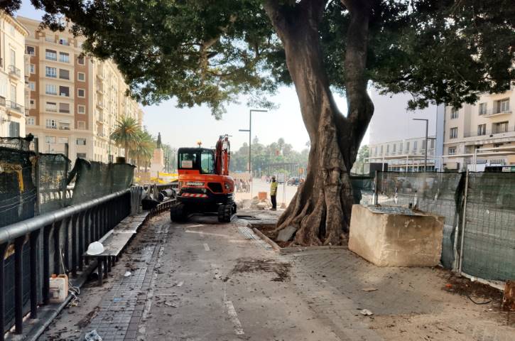 Las obras incluyen la solería final, alumbrado y riego en el lateral norte entre las calles Puerta del Mar y Larios