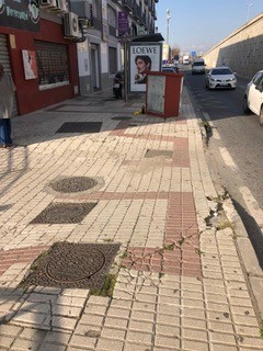 Y así lo ha hecho María de la Torre, quien ha podido comprobar la tremenda dificultad que supone transitar por las aceras de Jiménez Fraud, cuyo estado es auténticamente deplorable e inaceptable. “Para mí, que afortunadamente tengo salud y albergo capacidad plena para desplazarme a pie, ha sido una odisea llegar hasta el Clínico. El deterioro del acerado es alarmante. Baldosas levantadas, partidas o ausentes, lo que unido a continuos y recurrentes desniveles del piso, formados por un conglomerado de grietas, hondonadas y sobreelevaciones, suponen un importante riesgo para los viandantes, pero sobre todo, para niños, y personas de edad avanzada con capacidad reducida de movilidad porque usen silla de ruedas para sus desplazamientos, o en su defecto, un andador; lo que podría atentar contra la integridad física de los residentes que elijan el transporte público a la hora de acudir a dicho centro. Son muchas las personas las que a diario se apean en esta parada de la línea 25 de la EMT y transitan por Jiménez Fraud para acudir a su cita médica rutinaria”, ha aseverado María de la Torre.