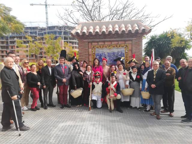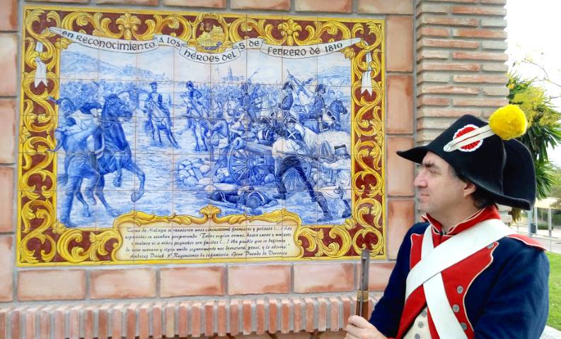 Valera fue precisamente el encargado de relatar los hechos de hace 210 años, cuando Málaga se levantó frente al entonces ejército más poderoso del mundo, el de Napoleón Bonaparte, que cruzaba de nuevo Despeñaperros dos años después de la batalla de Bailén. Un relato que se tornó en aún más emocionante con las intervenciones de dos voluntarias de la asociación, Elizabet Domínguez y María del Carmen Tinoco, que teatralmente encarnaron a las vecinas de los barrios de El Perchel y La Trinidad, que históricamente lanzaron incluso agua hirviendo desde los balcones de las casas y pagaron caro el atrevimiento en aquella jornada. Tras el descubrimiento del mosaico, el colofón al acto lo puso la Banda Municipal de Música, que en homenaje a la Paz sos siglos después interpretó los himnos de Polonia, Francia y España, y a lo que siguió una ofrenda floral por parte de los voluntarios del colectivo histórico – cultural. No faltaron representaciones de las vestimentas y uniformes de época.