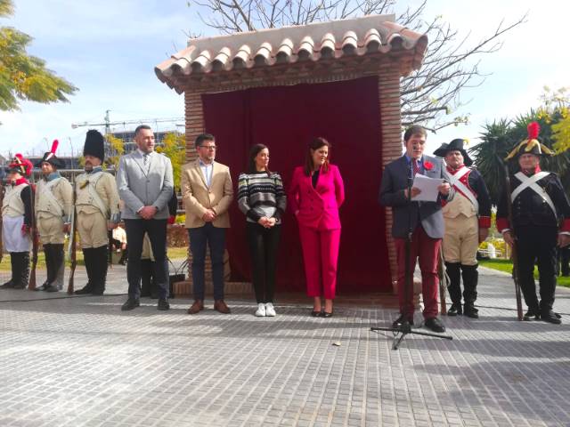 Valera fue precisamente el encargado de relatar los hechos de hace 210 años, cuando Málaga se levantó frente al entonces ejército más poderoso del mundo, el de Napoleón Bonaparte, que cruzaba de nuevo Despeñaperros dos años después de la batalla de Bailén. Un relato que se tornó en aún más emocionante con las intervenciones de dos voluntarias de la asociación, Elizabet Domínguez y María del Carmen Tinoco, que teatralmente encarnaron a las vecinas de los barrios de El Perchel y La Trinidad, que históricamente lanzaron incluso agua hirviendo desde los balcones de las casas y pagaron caro el atrevimiento en aquella jornada. Tras el descubrimiento del mosaico, el colofón al acto lo puso la Banda Municipal de Música, que en homenaje a la Paz sos siglos después interpretó los himnos de Polonia, Francia y España, y a lo que siguió una ofrenda floral por parte de los voluntarios del colectivo histórico – cultural. No faltaron representaciones de las vestimentas y uniformes de época.