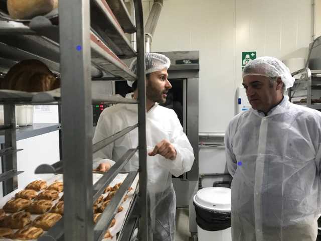El consejero ha recorrido las instalaciones de la fábrica, que ha adquirido recientemente una nueva línea automática formadora de pan rústico. Esta inversión permite trabajar con masas de alta hidratación, llegando hasta el 90% de absorción de agua, y además trata la masa sin desgasificarla o extrusionarla, con lo que se consigue un producto de calidad igual al hecho a mano.