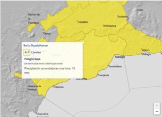 Aviso amarillo por lluvias y tormentas en Málaga para la madrugada del 8 de...