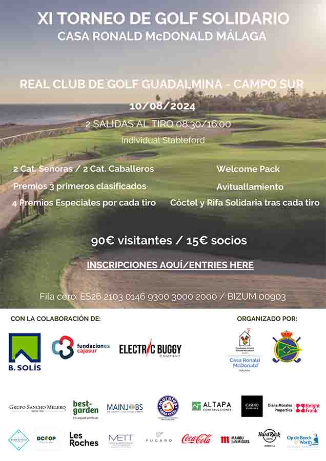 La Casa Ronald de Málaga, ya veterana y referente en el mundo de los torneos de golf solidarios de la Costa del Sol, ofrece a los jugadores poder practicar este deporte en un entorno maravilloso, como es el Real Club de Golf de Guadalmina y disfrutar de todos los detalles que ofrece el torneo, mientras aportan su granito de arena a una causa encomiable.