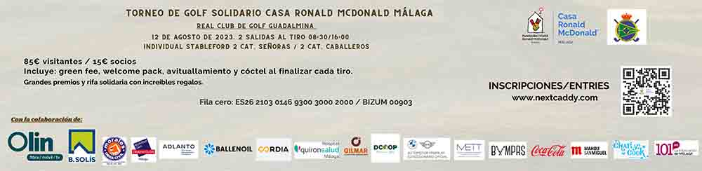 Málaga, 10 de julio de 2023.- La Casa Ronald McDonald de Málaga ha organizado para el próximo sábado 12 de agosto un espectacular Torneo de Golf Solidario en el Real Club de Golf Guadalmina, con el fin de recaudar fondos que se destinarán a ayudar y dar alojamiento gratuito a las familias con hijos/as gravemente enfermos, que tienen que abandonar su lugar de residencia habitual y desplazarse a Málaga para recibir tratamiento médico de larga duración.