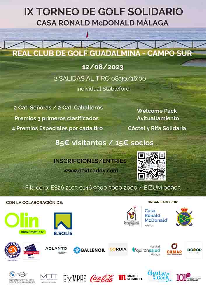 El torneo de golf, que tiene como colaboradores principales a Olin y Construcciones Bonifacio Solís, tendrá lugar en el Real Club de Golf Guadalmina, en la modalidad Individual Stableford, con dos salidas al tiro, una a las 8:30 y otra a las 16:00 horas.