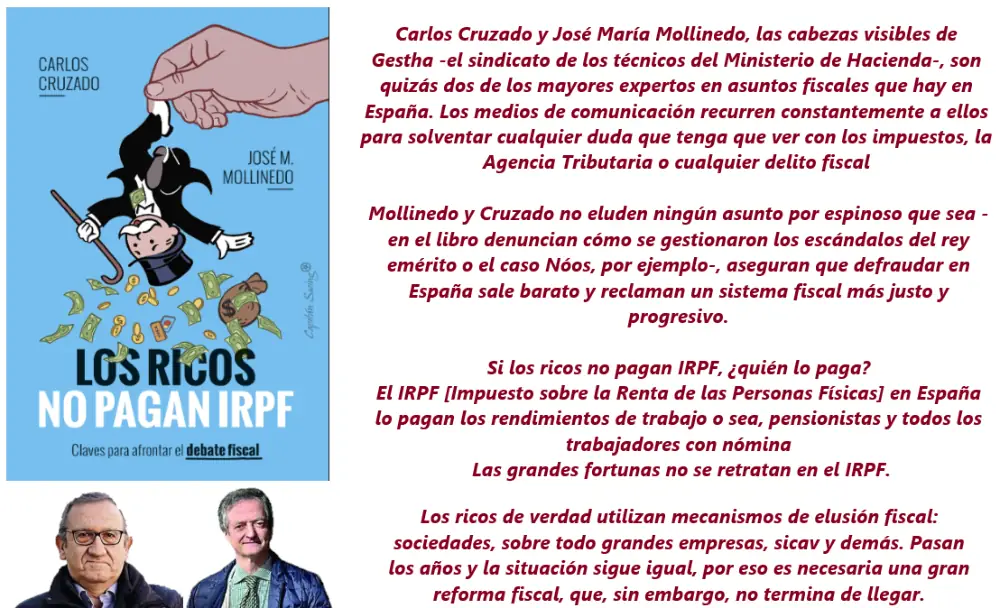 “Los ricos no pagan IRPF”, es una frase pronunciada previamente por José María Aznar, en 1998, y Pedro Sánchez, en 2018. En realidad, sencillamente, los ricos no pagan. El IRPF en España -en sus inicios en los años 80- tuvo tipos máximos del 65%. Después con el PP y el PSOE se fueron bajando. Obviamente hay una inmensa demanda urgente para que paguen. Y con las grandes empresas sucede lo mismo. Hay que acabar con la injusta situación por la que las mayores empresas pagan un tercio de lo que pagan las pequeñas y medianas empresas. ¿Habrá llegado a sus oídos la reivindicación popular, estimada señora ministra?