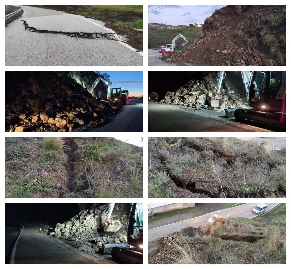 Cortada la MA-3112 (Almáchar) por deslizamiento de un talud.