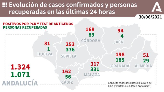 Actualización de datos Covid-19 Vacunas administradas en Andalucía a 29 de junio: