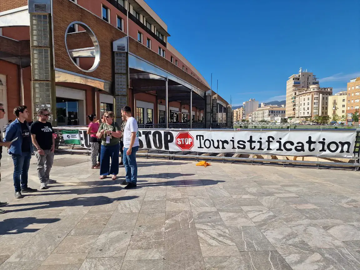 Adelante Andalucía se han plantado frente a la Cumbre internacional de pisos turísticos que se celebra en Málaga y ante una pancarta que rezaba “Europa Stop turistificación” han querido lanzar un mensaje crítico contra el actual modelo turístico y lo han hecho precisamente en la provincia de Málaga, la provincia de todo el estado que más sufre la turistificación con datos como que en el centro de la capital hay más pisos turísticos que habitantes o que tiene los municipios donde más sube el alquiler.