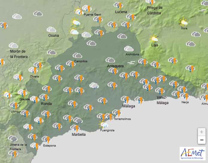 La Agencia Estatal de Meteorología (AEMET) ha emitido un aviso de nivel amarillo para la jornada del jueves 13 de marzo debido a la previsión de intensas lluvias y fuertes rachas de viento que afectarán a varias zonas de la provincia de Málaga, en especial la Costa del Sol, el Valle del Guadalhorce, la Axarquía y la Serranía de Ronda.