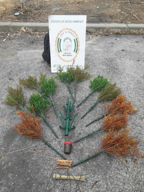 En concreto, han sido decomisados 5 cepos para la caza de zorros, jabalíes, corzos, ciervos…; 12 perchas o costillas para la captura de pájaros; 12 redes invisibles o japonesas para la caza de pájaros; 3 arbolillos artificiales para la captura de aves con liria o liga (pegamento), incluidos los utensilios de los mismos (crucetas plásticas, esparto, canutillos y botes de pegamento).