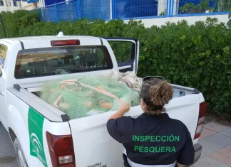 Inspección Pesquera de la Junta incauta artes de pesca ilegales en Málaga, en colaboración...