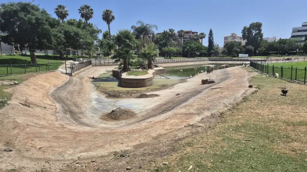 El vaciado del estanque se está realizando «a un ritmo muy lento» en pleno episodio de altas temperaturas, sin que se haya proporcionado una alternativa adecuada para la estancia de los patos y otras especies. «Lejos de facilitar un entorno accesible, se han colocado tanques de un metro cúbico, demasiado altos para que los animales accedan a ellos, obligándolos a mantenerse entre el lodo y los restos acumulados».