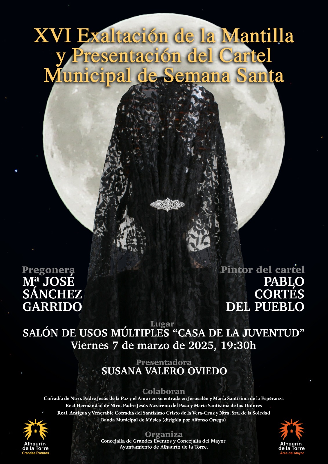 Alhaurín de la Torre se prepara para recibir uno de los actos más emblemáticos de la Cuaresma: la XVI Exaltación de la Mantilla y la Presentación del Cartel Municipal de Semana Santa, que tendrá lugar el próximo viernes 7 de marzo de 2025 en el Salón de Usos Múltiples «Casa de la Juventud» a partir de las 19:30 horas.
